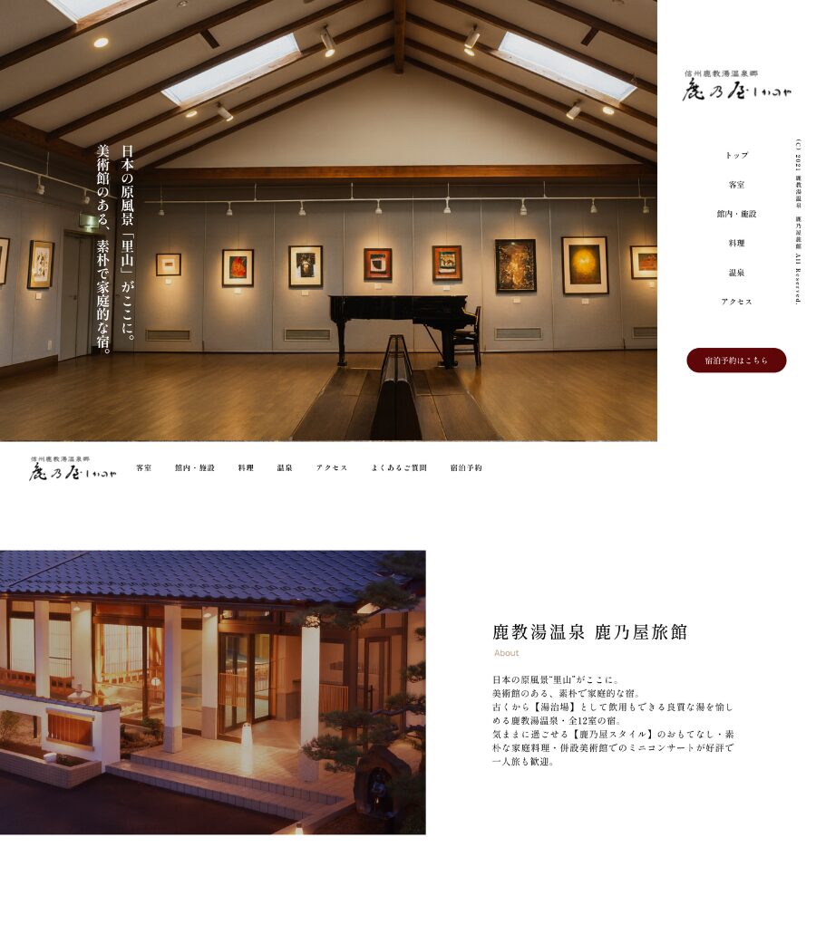 本サイトは、旅館に併設された美術館という施設の特性を的確に伝え、訪れる前から空間の魅力や過ごし方を具体的に想像していただくことを目的として制作いたしました。宿泊・食事・展示鑑賞といった複数の体験価値を持つ施設であるため、それぞれの魅力が埋もれないよう、情報を整理しながら全体像が自然に伝わる構成を意識しております。