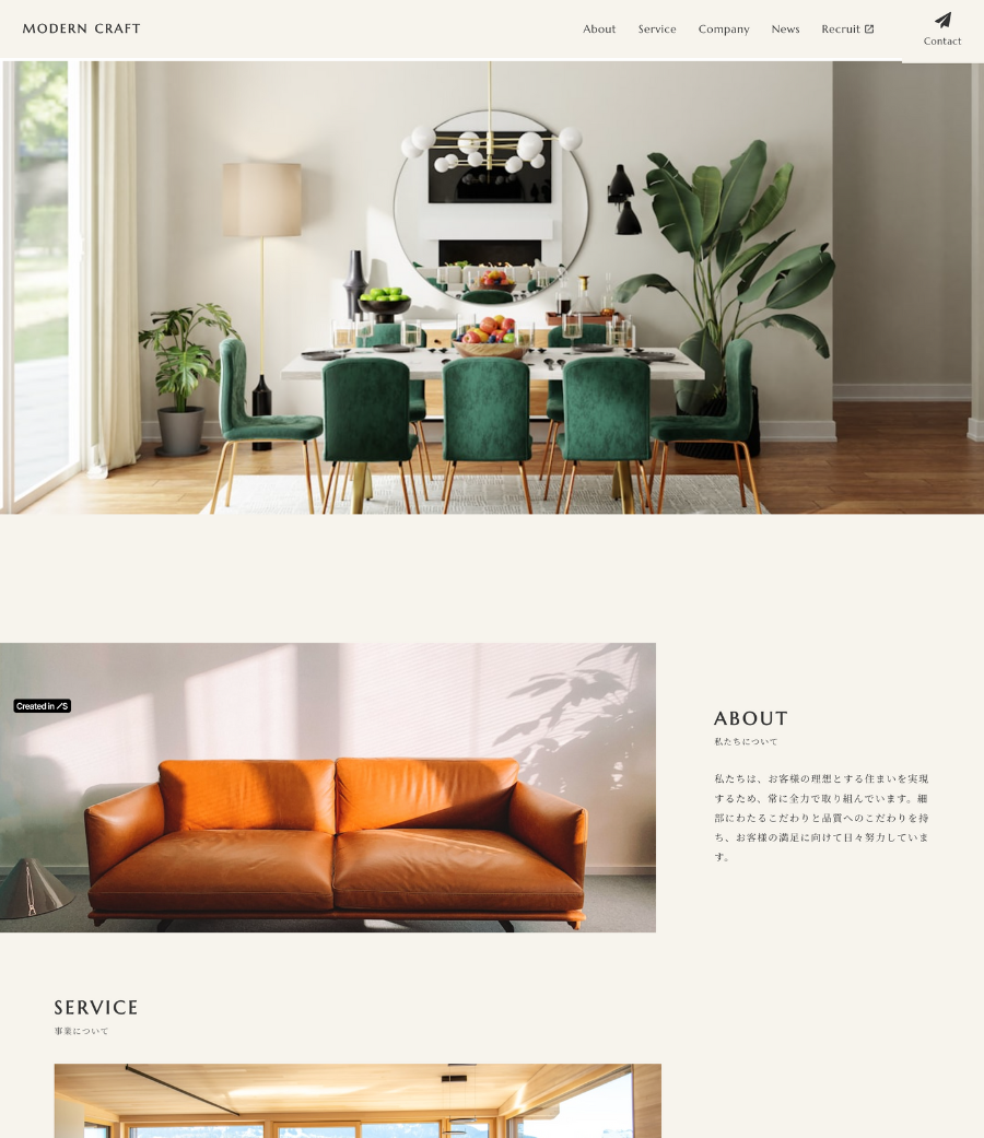 空間デザインやリノベーションを手がける架空のブランドを想定し、ブランドの世界観を伝えるためのデモLPとして制作しました。暮らしに馴染む自然な色味と、光のニュアンスが感じられる写真を基調に、落ち着いたトーンで構成しています。